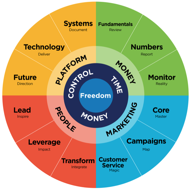 You’ll see we’ve developed the Lifestyle Tradie Business Model. It looks like a game of Trivial Pursuit. You’ve got to master all the pieces of the pie. The problem is, most people skip the steps.